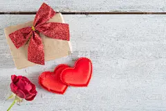 框架红丝带心白色背景礼物概念情人节、妇女节、母亲节