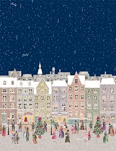 手绘圣诞节市集户外摆摊逛街购物圣诞树圣诞礼物插画ai设计素材-淘宝网