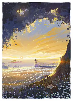 \日出日落之处,你相信这是手绘吗