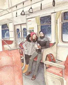 #随手拍春天#手绘一张开往春天的地铁李旻插画超话 @微博美学